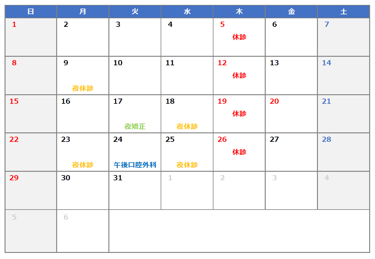2025年6月より歯科衛生士学校の講義等もあり、木曜日を当面の間、休診とさせていただきます。皆様にはご迷惑をお掛けしますが、ご理解くださいますよう宜しくお願いいたします。